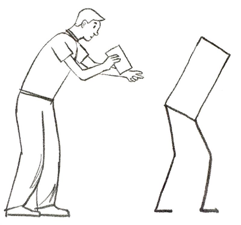 - Start with the center of gravity (not the head), so the trunk of the body - Image