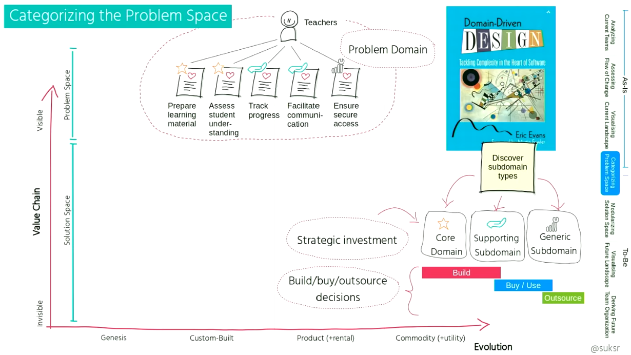 - based on the subdomains types, you might make an investment strategy (Core subdomain you build as it’s a differentiator, generic should be outsourced…)